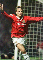Ferguson is convinced he is the man to do that job. Teddy did not have long to wait before returning to White Hart Lane, United's opening league game was against Tottenham. Teddy recieved a rough-ride off both players and fans, and his misery was compounded when he missed a penalty which would have put United in front. However Teddy had the last laugh as United won 2-0. At 31, Teddy has got the chance to play in Europe, and he scored on his Champions League debut against Juventus, his first goal at Old Trafford. There are centre forwards who thrill the crowds - and then there are centre forwards who please their striking partners - Teddy Sheringham falls into the second category. Play him alongside any other forward and nine times out of ten the end result will be greater than the sum parts. Sheringham, born in Walthamstow, started his career with Millwall as an apprentice and worked his way through the club junior sides before making his first team debut in January 1984 against Bournemouth. He had a spell out on loan at Aldershot but returned to The Den to become a fixture in the side during the 1986-87 season when he scored 18 goals. His partner in crime at Millwall was Tony Cascarino and in the 1987-88 season this pairing scored 42 goals as Millwall reached the First Division for the first time ever. Millwall had a good first season but were relegated the next year however back in Division Two Sheringham, now 29, again proved he was a potent striker with 33 League goals, 38 in all games - a tally which equalled the club record set by Richard Parker in 1926-27 and Peter Buridge in 1960-61. Nottingham Forest moved in, paying £2m for his services but although he scored goals for the club he never really settled and 13 months later was back in London - moving to Tottenham for £2,100,000. The goals started to flow again and by the end of the 1992-93 Sheringham had rattled in 29 to become the Carling Premiership's "Golden Boot" winner. Goals are, of course, his lifeblood but his partnership with Jurgen Klinsmann flourished becaus eof his unselfish play and his ability to hold the ball up and find his partner. The same happened in the 1995-96 season - his understanding with Chris Armstrong - the fresh face brought in from Crystal Palace to replace Klinsmann - though taking time to gel, finaly paying dividends. And put Sheringham in an England shirt and he will do the business again. At international level he has formed a good understanding with Alan Shearer, as shown during Euro 96, the Blackburn striker and though the game demands a degree of selfishness to succeed, Sheringham is a man who knows how to balance the scales - to do what is best for him and for his team. |